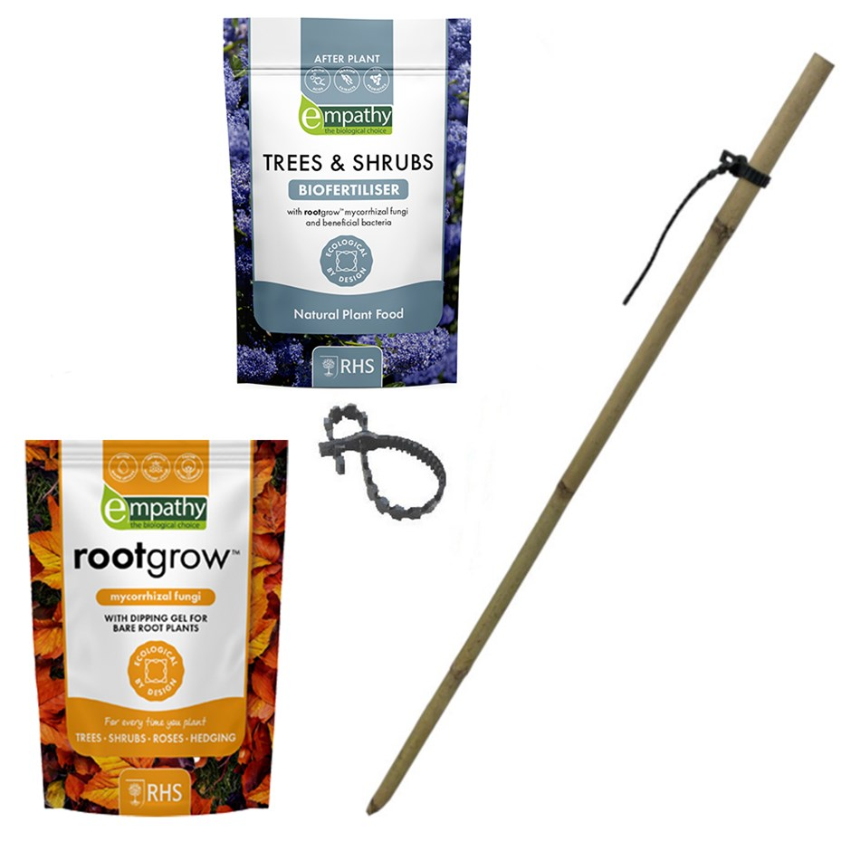 Soak the roots in water for a couple of hours before planting, then dig a generous hole and mix in some soil improver or well-rotted farmyard manure. Then sprinkle some Mycorrhizal Fungi powder around the inside of your planting hole.