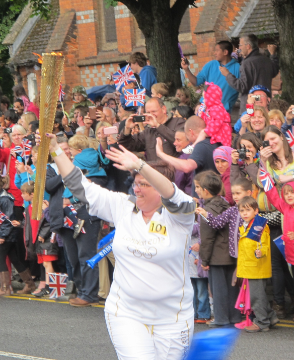 On Tuesday the Primrose team lined the rainy streets in Reading to see Lorna run (jog? walk?) with the Olympic torch as the first torchbearer in our town. Avid readers of this blog of course already know that we were preparing for it last week and Lorna was even featured in the local paper with us.