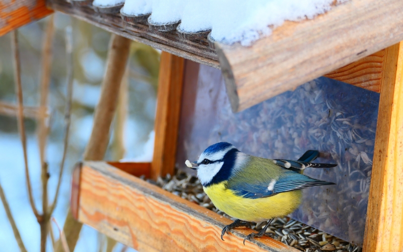 As birds don’t hibernate, it’s important to provide them lots of food and a water source over winter. Food in the wild can be scarce over the colder months. To help prevent starvation, have a variety of foods available to them over a number of feeding stations.