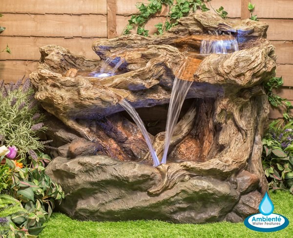 H77cm Montana Falls Log & Rock Cascading Water Feature with Lights - by Ambienté©This incredible Montana falls water feature looks like...